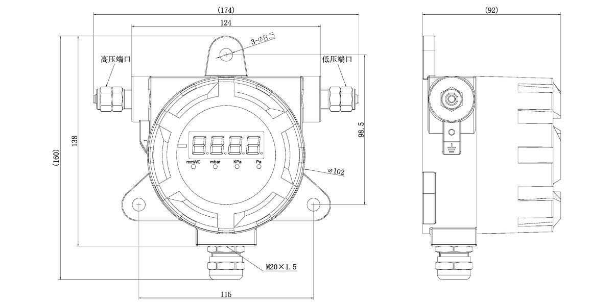 WP8338防爆電子壓差表整體為鑄鋁結構,兩個壓力接口為?8快擰接頭,可直接安裝在測量管道上或通過引壓管連接。適用于干燥、非腐蝕氣體和壓縮空氣,配備LCD顯示,通過對參數便捷的設定并清晰顯示測量值等信號。廣泛應用于鍋爐送風,井下通風等電力、煤炭行業,超凈廠房自動化檢測壓力過程控制。